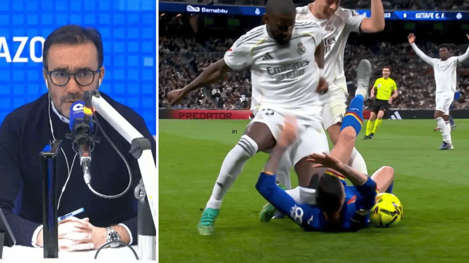 争议发生在比赛中段,吕迪格在一次对抗中连续以膝盖顶到迭戈-里科,引发双方球员争论。对此,科贝电台节目《El Partidazo》主持人胡安马-卡斯塔尼奥在转播中态度十分强硬。他表示:“这是我们今年看到的最野蛮的动作之一。”