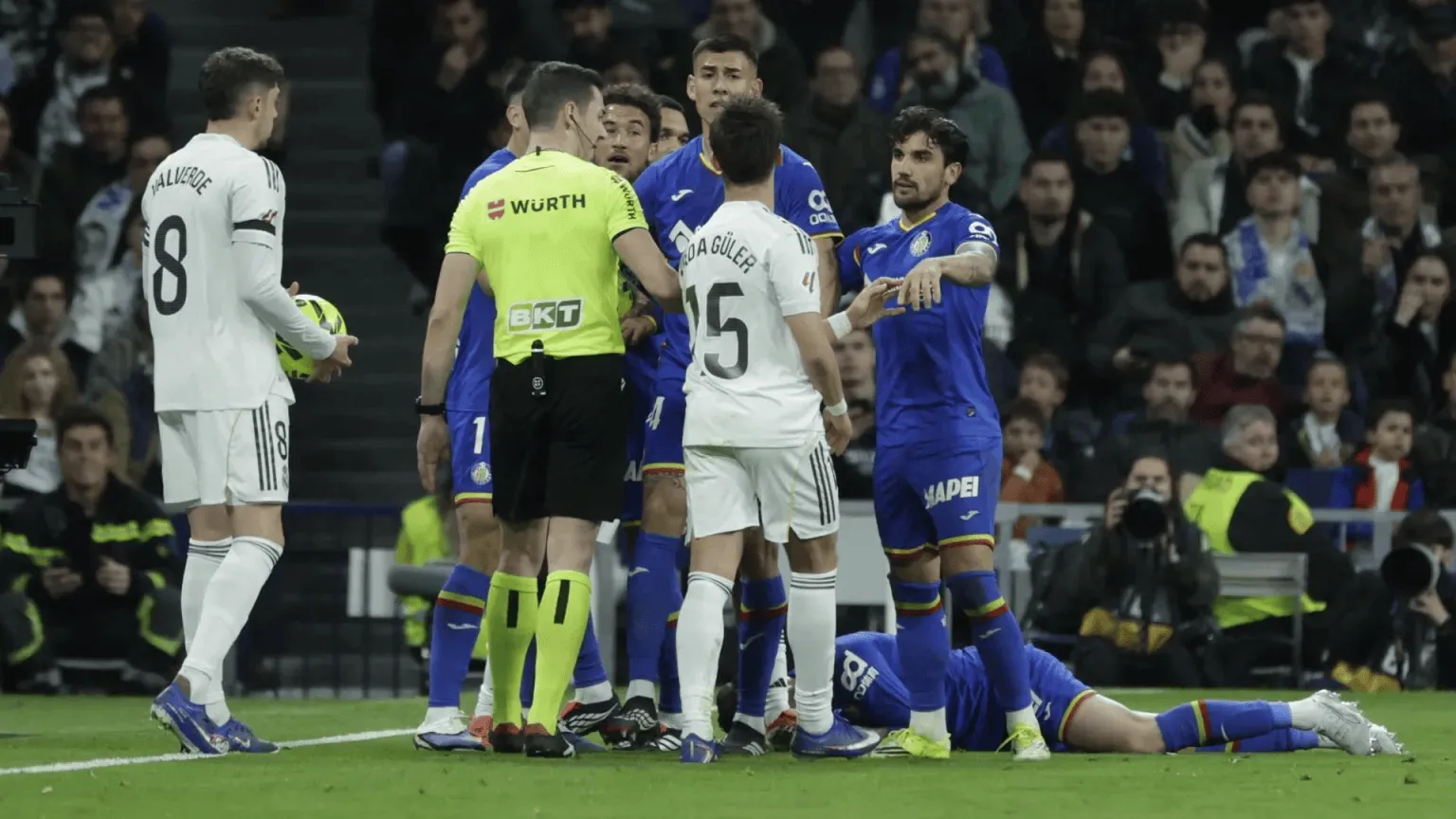 虎扑03月03日讯 在当地时间本周一晚间进行的西甲第26轮比赛中,皇马主场对阵赫塔菲。比赛过程中,吕迪格对赫塔菲后卫迭戈-里科的动作成为全场焦点,引发外界巨大争议。
